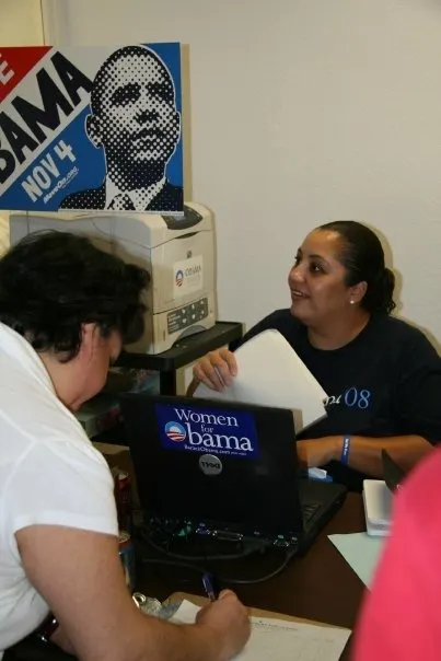 Regina M., co-founder of Obama San Diego, works at a phone bank.